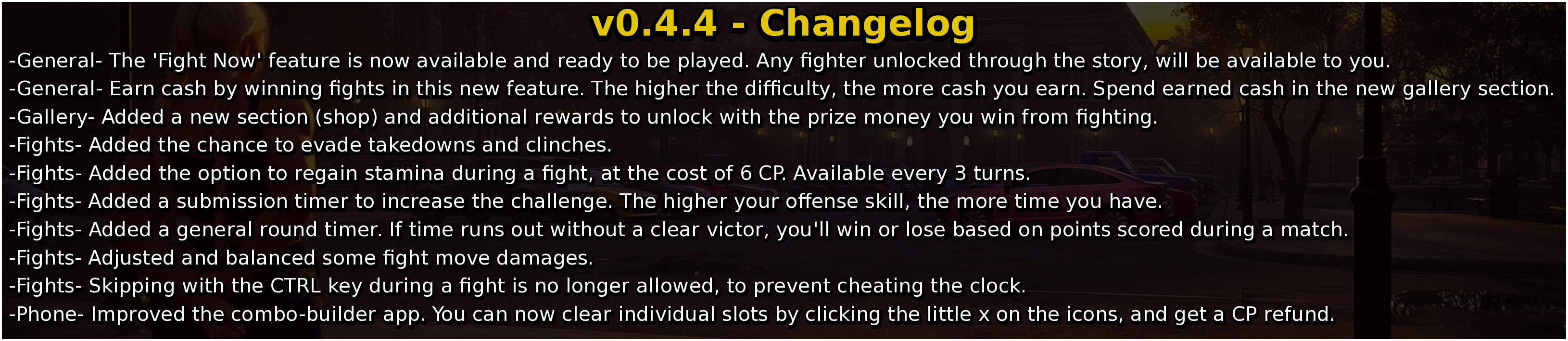 Wow!!! This version looks soooo good now 🤩. I noticed things I never even saw before. The reworked renders are amazing. The animations are better and even the MMA sequences are better. The attention to detail in this game sets the bar for all other games. It will give all other dev's something to strive for 😉.